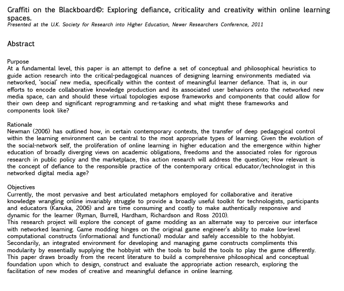 I believe that approaching this work with the hybrid nature of a new media artist/technologist and an adult educator