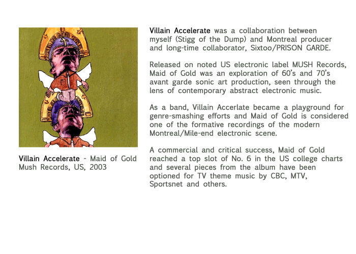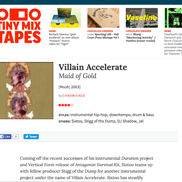 ... the combined powers of Sixtoo and Stigg of the Dump (who make up Villain Accelerate) have resulted in an atmospheric instrumental Hip Hop album the likes of which are too rarely heard.