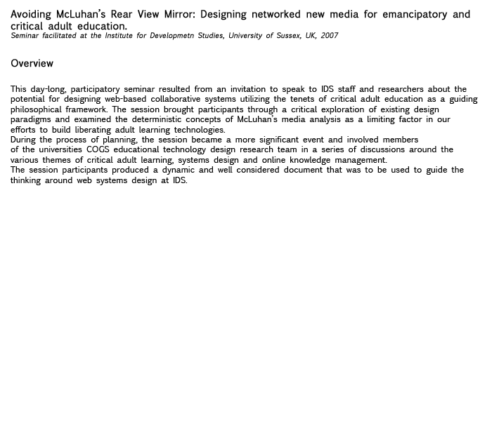 I believe that approaching this work with the hybrid nature of a new media artist/technologist and an adult educator